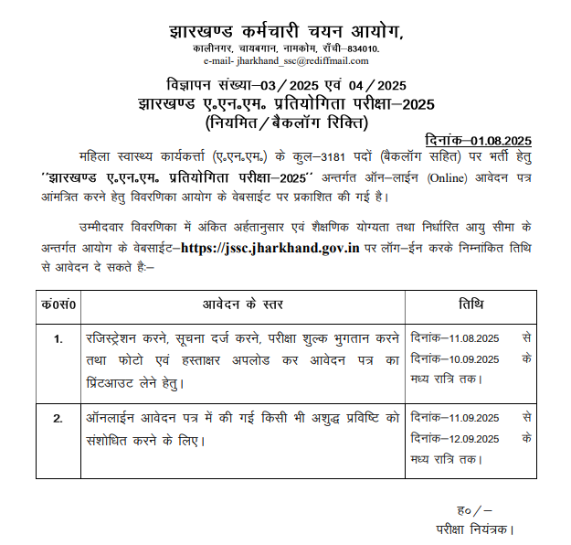 JSSC ANM भर्ती 2025 आधिकारिक सूचना